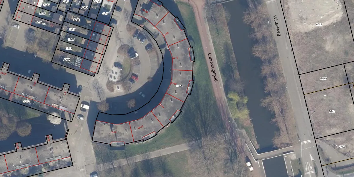 Het adres is gelegen op perceel 1251 in de sectie K en de kadastrale gemeente Almere. De kadastrale aanduiding is aldus AMR04-K-1251. Het perceel is 1914 m² groot. Dat is kleiner dan de gemiddelde perceeloppervlakte in Almere, dat op 3328,15 m² ligt. Het grootste perceel in de kadastrale gemeente is 32,12 km². Het kleinste perceel heeft een oppervlakte van 0 m². Op het perceel liggen in totaal 47 adressen. De huidige grenzen van het perceel zijn digitaal in de Basisregistratie Kadaster (BRK) geregistreerd op 20-08-1997.