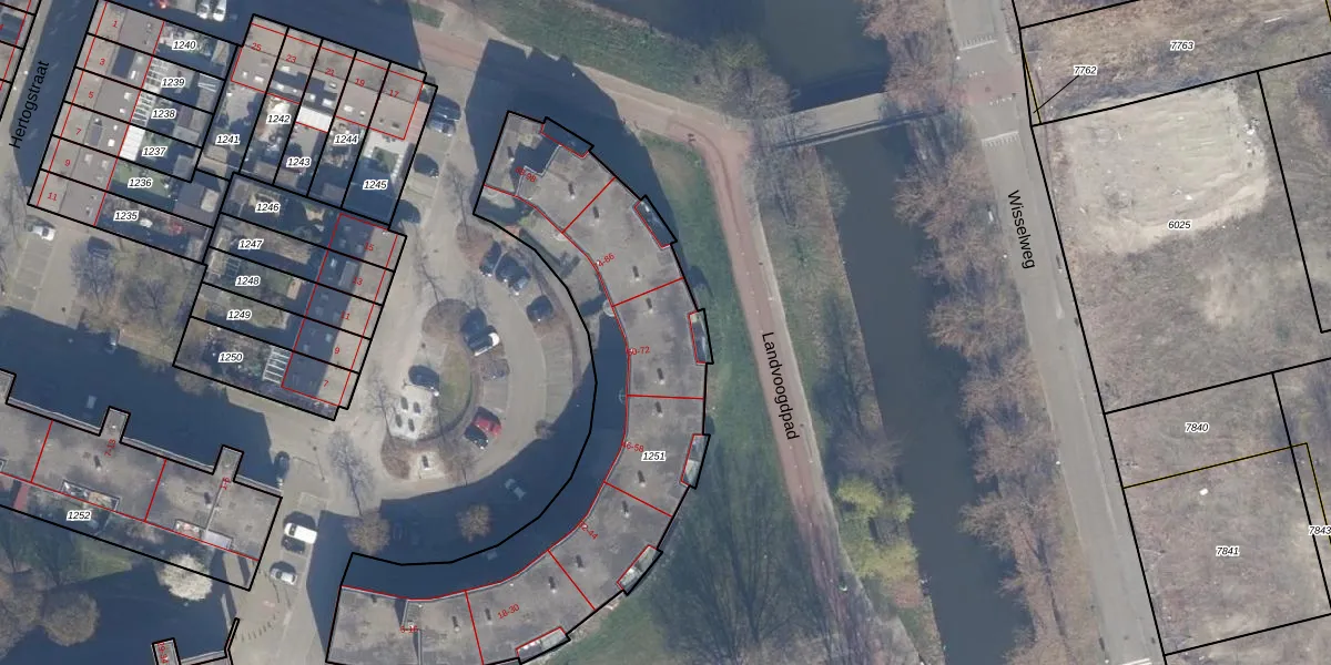 Het adres is gelegen op perceel 1251 in de sectie K en de kadastrale gemeente Almere. De kadastrale aanduiding is aldus AMR04-K-1251. Het perceel is 1914 m² groot. Dat is kleiner dan de gemiddelde perceeloppervlakte in Almere, dat op 3328,15 m² ligt. Het grootste perceel in de kadastrale gemeente is 32,12 km². Het kleinste perceel heeft een oppervlakte van 0 m². Er zijn 47 adressen aanwezig op het perceel. De huidige grenzen van het perceel zijn digitaal in de Basisregistratie Kadaster (BRK) geregistreerd op 20-08-1997.