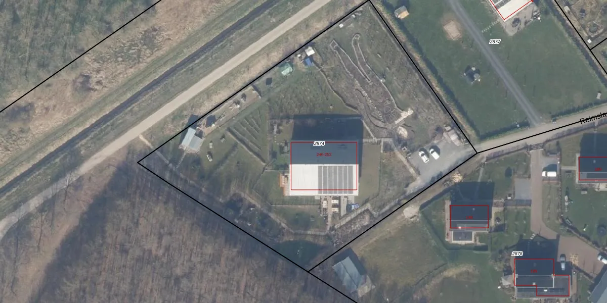 Het perceel waarop Reimslaan 250 staat heeft een oppervlakte van 5002 m². Dit is een zeer groot perceel. De perceeloppervlakte wordt geregistreerd door het Kadaster. Gedetailleerde informatie over de maten van dit perceel kunt u vinden in het rapport Kadastrale kaart met maatvoering van Reimslaan 250.