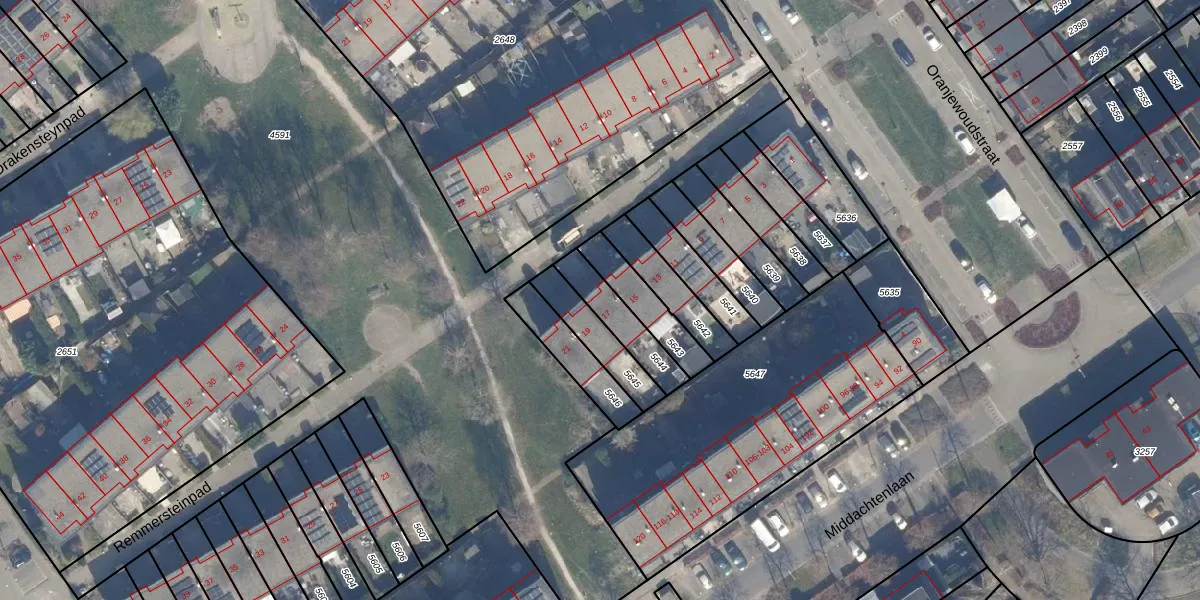 Gebruik de zoekbalk of klik op een perceel voor informatie over de adressen binnen dit perceel.
