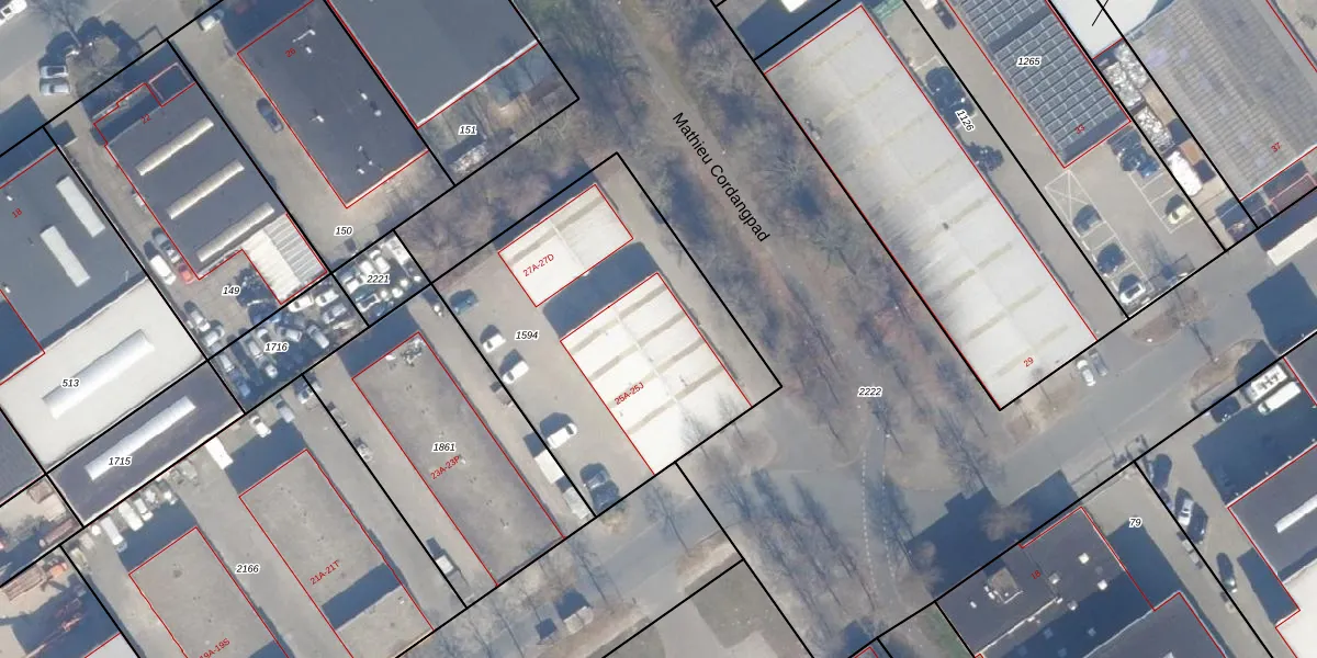 Het adres is gelegen op perceel 1594 in de sectie M en de kadastrale gemeente Almere. De kadastrale aanduiding is aldus AMR04-M-1594. Het perceel is 1501 m² groot. Dat is kleiner dan de gemiddelde perceeloppervlakte in Almere, dat op 3329,62 m² ligt. Het grootste perceel in de kadastrale gemeente is 32,12 km². Het kleinste perceel heeft een oppervlakte van 0 m². Op het perceel liggen in totaal 14 adressen. De laatste wijziging in het de Basisregistratie Kadaster (BRK) was op 29-05-2008.