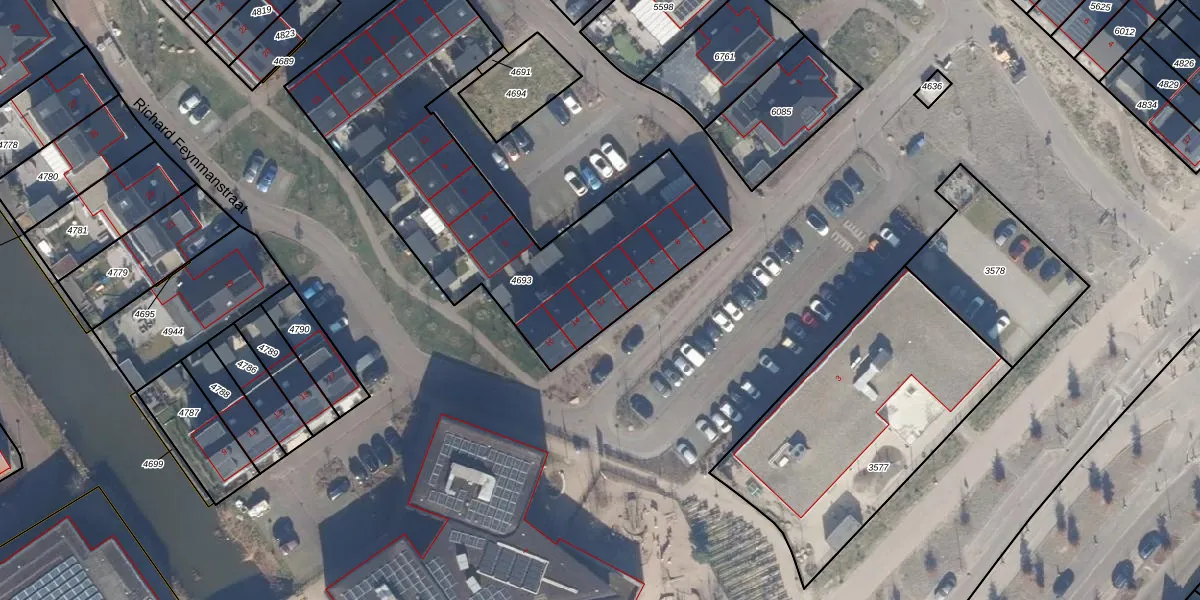 Het perceel waarop Richard Feynmanstraat 12 staat heeft een oppervlakte van 1725 m². Dit is een zeer groot perceel. De perceeloppervlakte wordt geregistreerd door het Kadaster. Gedetailleerde informatie over de maten van dit perceel kunt u vinden in het rapport Kadastrale kaart met maatvoering van Richard Feynmanstraat 12.