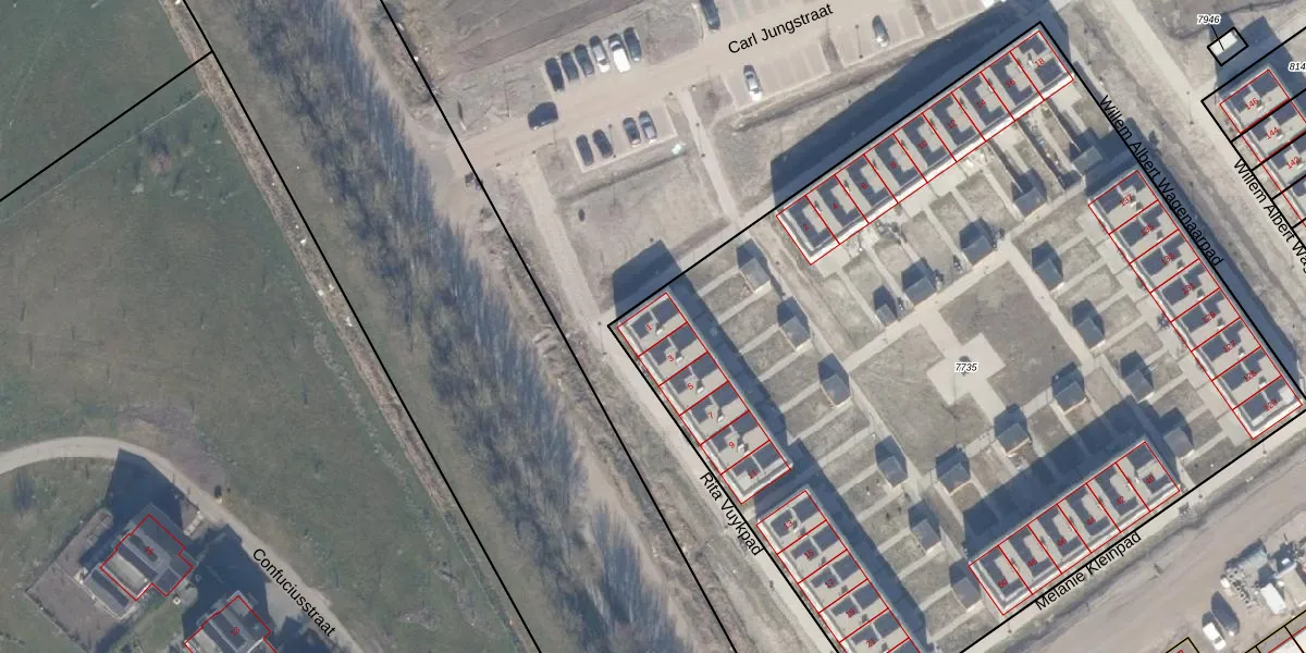 Het perceel waarop het adres ligt is AMR04-C-7735. De afkorting 'AMR04' staat voor kadastrale gemeente Almere. Het perceel is met 5830 m² relatief groot. Het gemiddelde ligt in de kadastrale gemeente Almere op 3328,15 m². De grootste perceeloppervlakte in de kadastrale gemeente is 32,12 km². De kleinste oppervlakte bedraagt 0 m². Op het perceel zijn 35 adressen aanwezig. In de Basisregistratie Kadaster (BRK) werden de grenzen van het perceel geregistreerd op 06-08-2025.