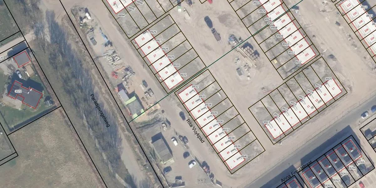 Het perceel waarop Rita Vuykpad 35 staat heeft een oppervlakte van 163 m². Dit is een middelgroot perceel. De perceeloppervlakte wordt geregistreerd door het Kadaster. Gedetailleerde informatie over de maten van dit perceel kunt u vinden in het rapport Kadastrale kaart met maatvoering van Rita Vuykpad 35.