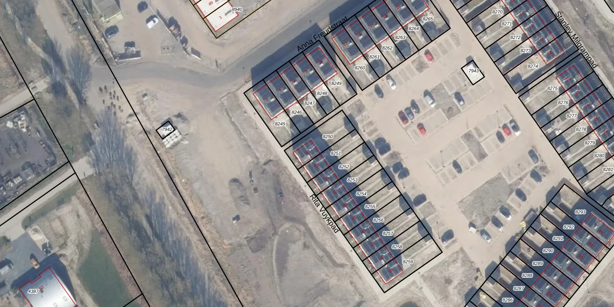 Het perceel waarop het adres ligt is AMR04-C-8250. De afkorting 'AMR04' staat voor kadastrale gemeente Almere. De gemiddelde perceelgrootte in Almere is 3328,15 m². Dit perceel is kleiner: de perceeloppervlakte bedraagt 173 m². Het grootste perceel in de kadastrale gemeente is 32,12 km². Het kleinste perceel heeft een oppervlakte van 0 m². Er zijn geen andere adressen aanwezig op het perceel. In de Basisregistratie Kadaster (BRK) werden de grenzen van het perceel geregistreerd op 23-04-2025.