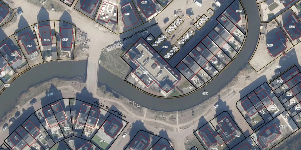Het perceel waarop Robert Hofstadterstraat 22 staat heeft een oppervlakte van 1038 m². Dit is een zeer groot perceel. De perceeloppervlakte wordt geregistreerd door het Kadaster. Gedetailleerde informatie over de maten van dit perceel kunt u vinden in het rapport Kadastrale kaart met maatvoering van Robert Hofstadterstraat 22.