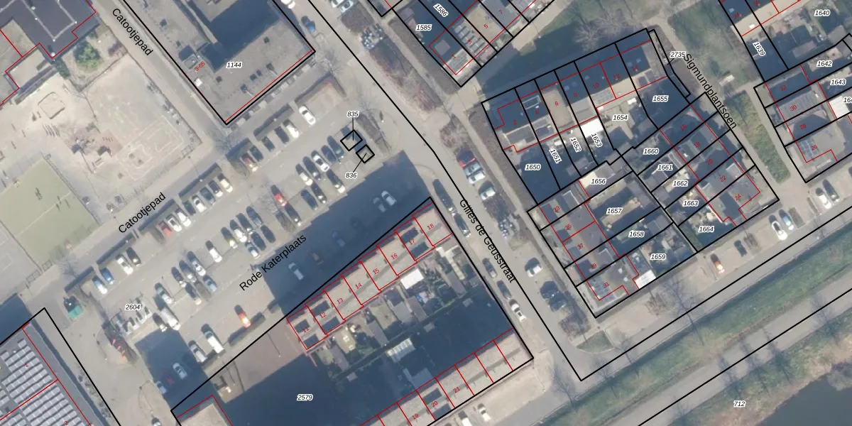 Het perceel waarop Rode Katerplaats 18 staat heeft een oppervlakte van 3151 m². Dit is een zeer groot perceel. De perceeloppervlakte wordt geregistreerd door het Kadaster. Gedetailleerde informatie over de maten van dit perceel kunt u vinden in het rapport Kadastrale kaart met maatvoering van Rode Katerplaats 18.