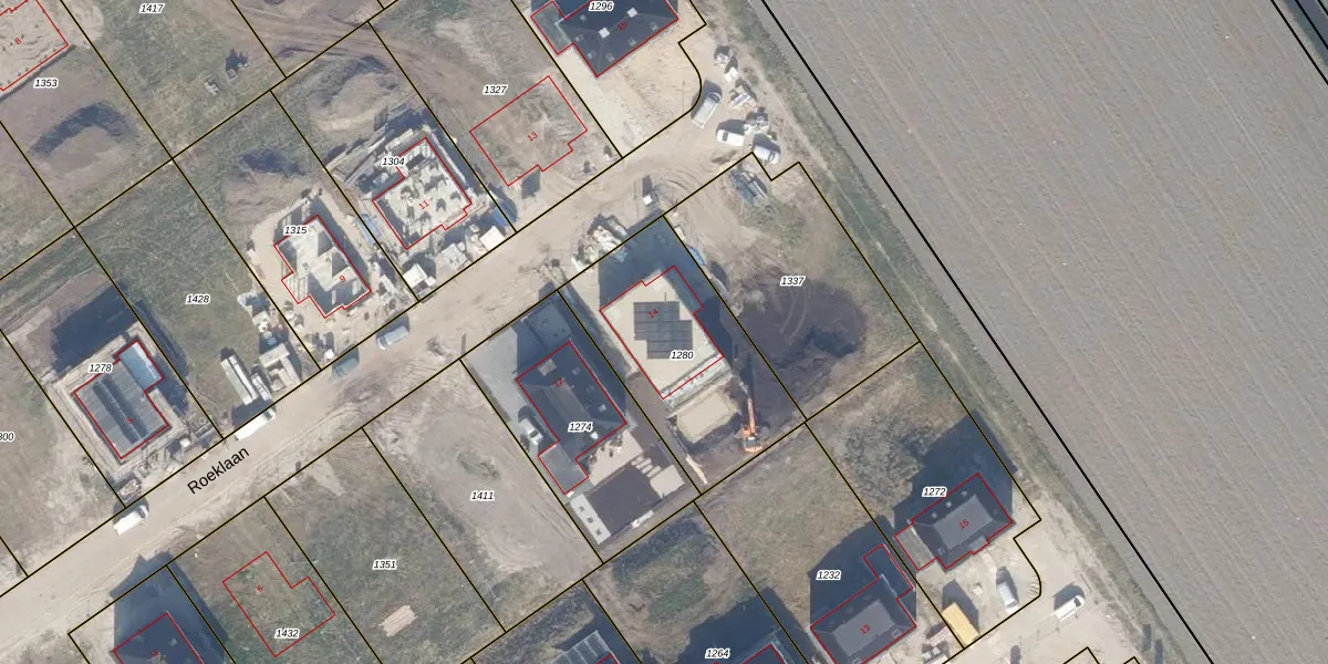 Het perceel waarop Roeklaan 14 staat heeft een oppervlakte van 737 m². Dit is een groot perceel. De perceeloppervlakte wordt geregistreerd door het Kadaster. Gedetailleerde informatie over de maten van dit perceel kunt u vinden in het rapport Kadastrale kaart met maatvoering van Roeklaan 14.