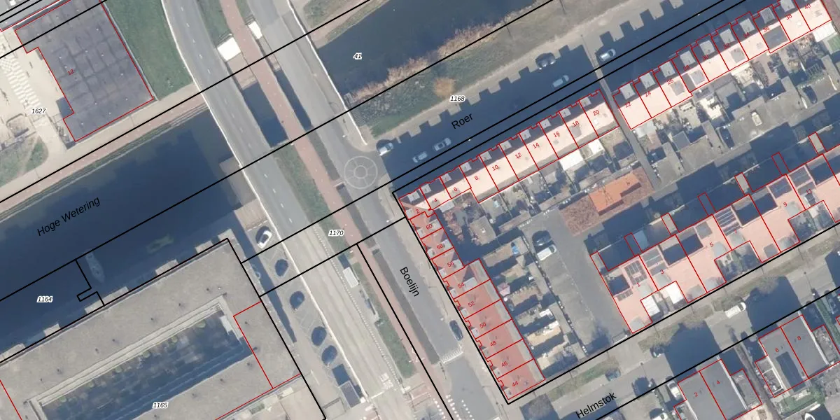 Het perceel waarop Roer 2 staat heeft een oppervlakte van 1,4 ha. Dit is een zeer groot perceel. De perceeloppervlakte wordt geregistreerd door het Kadaster. Gedetailleerde informatie over de maten van dit perceel kunt u vinden in het rapport Kadastrale kaart met maatvoering van Roer 2.
