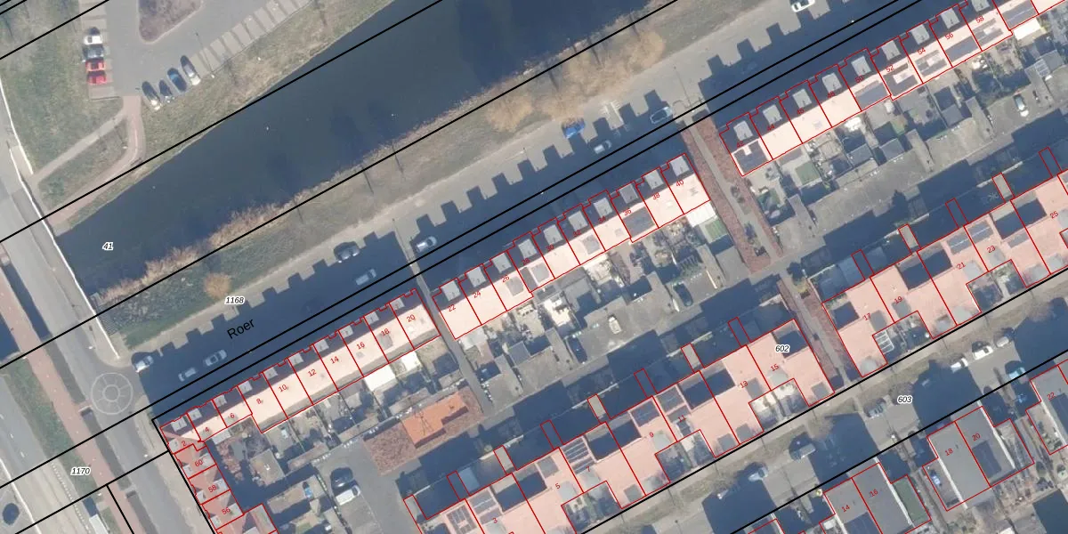 Het perceel waarop Roer 28 staat heeft een oppervlakte van 1,4 ha. Dit is een zeer groot perceel. De perceeloppervlakte wordt geregistreerd door het Kadaster. Gedetailleerde informatie over de maten van dit perceel kunt u vinden in het rapport Kadastrale kaart met maatvoering van Roer 28.