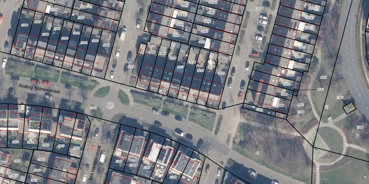Het perceel waarop Rolling Stonesstraat 18 staat heeft een oppervlakte van 163 m². Dit is een middelgroot perceel. De perceeloppervlakte wordt geregistreerd door het Kadaster. Gedetailleerde informatie over de maten van dit perceel kunt u vinden in het rapport Kadastrale kaart met maatvoering van Rolling Stonesstraat 18.