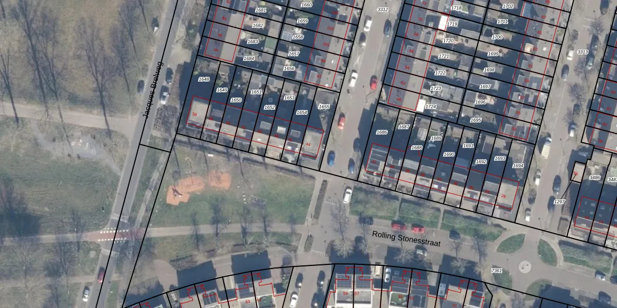 Rolling Stonesstraat 44 is gelegen op kadastraal perceel AMR04Q1655. Deze kadastrale aanduiding is uniek en wordt gebruikt door het Kadaster om eigendomsrechten en andere zakelijke rechten vast te leggen. Het perceel maakt onderdeel uit van de kadastrale gemeente Almere.