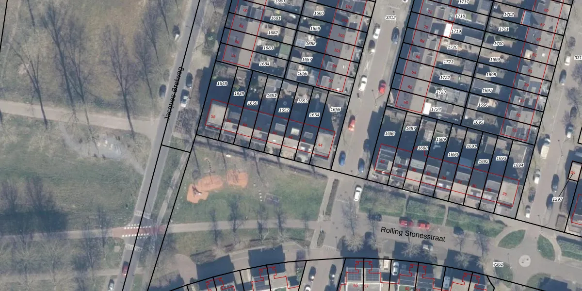 Rolling Stonesstraat 48 is gelegen op kadastraal perceel AMR04Q1653. Deze kadastrale aanduiding is uniek en wordt gebruikt door het Kadaster om eigendomsrechten en andere zakelijke rechten vast te leggen. Het perceel maakt onderdeel uit van de kadastrale gemeente Almere.