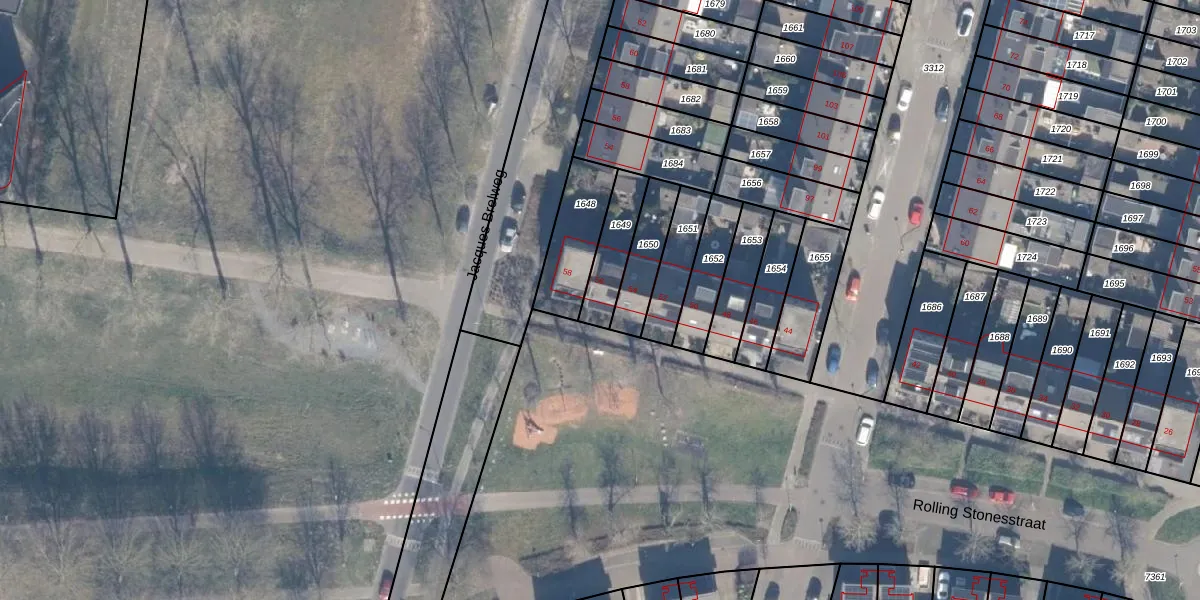 Rolling Stonesstraat 56 is gelegen op kadastraal perceel AMR04Q1649. Deze kadastrale aanduiding is uniek en wordt gebruikt door het Kadaster om eigendomsrechten en andere zakelijke rechten vast te leggen. Het perceel maakt onderdeel uit van de kadastrale gemeente Almere.