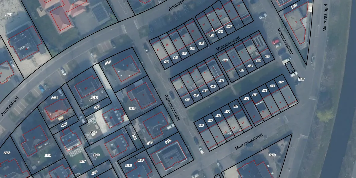 Gebruik de zoekbalk of klik op een perceel voor informatie over de adressen binnen dit perceel.