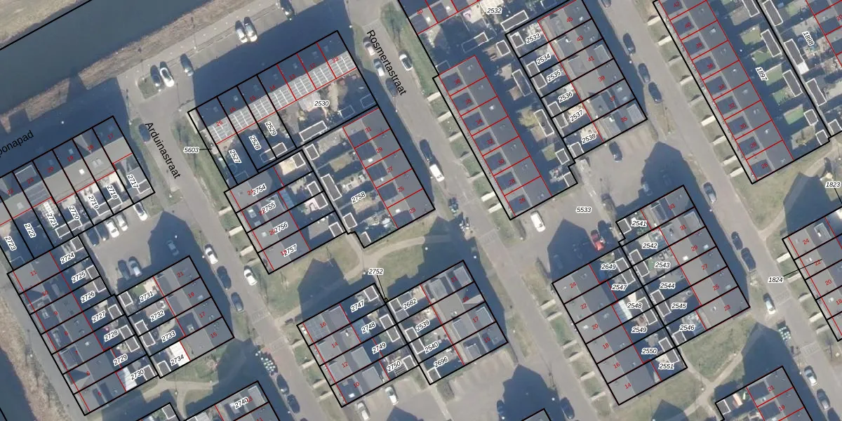 Het perceel waarop Rosmertastraat 23 staat heeft een oppervlakte van 595 m². Dit is een groot perceel. De perceeloppervlakte wordt geregistreerd door het Kadaster. Gedetailleerde informatie over de maten van dit perceel kunt u vinden in het rapport Kadastrale kaart met maatvoering van Rosmertastraat 23.