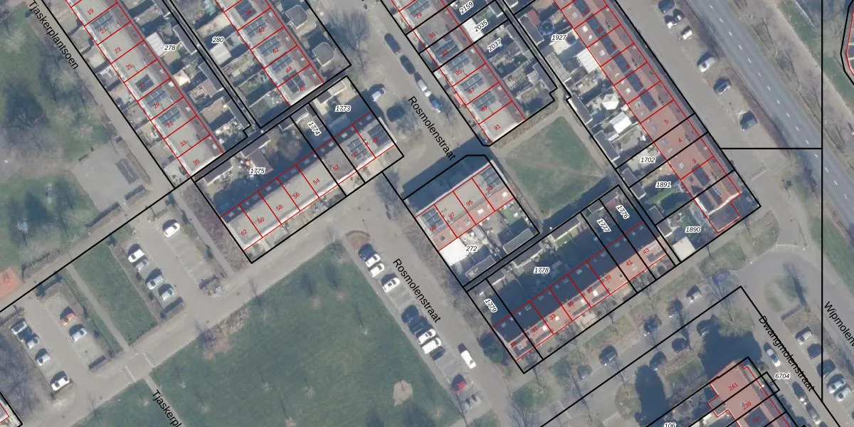 Het perceel waarop Rosmolenstraat 99 staat heeft een oppervlakte van 538 m². Dit is een groot perceel. De perceeloppervlakte wordt geregistreerd door het Kadaster. Gedetailleerde informatie over de maten van dit perceel kunt u vinden in het rapport Kadastrale kaart met maatvoering van Rosmolenstraat 99.