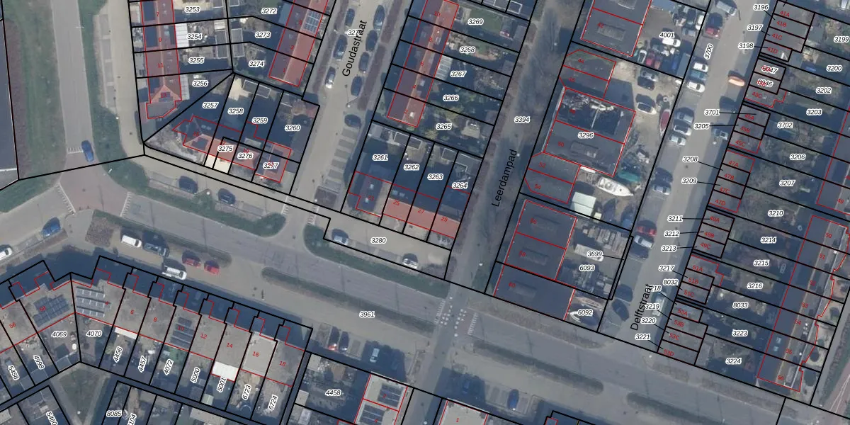 Gebruik de zoekbalk of klik op een perceel voor informatie over de adressen binnen dit perceel.