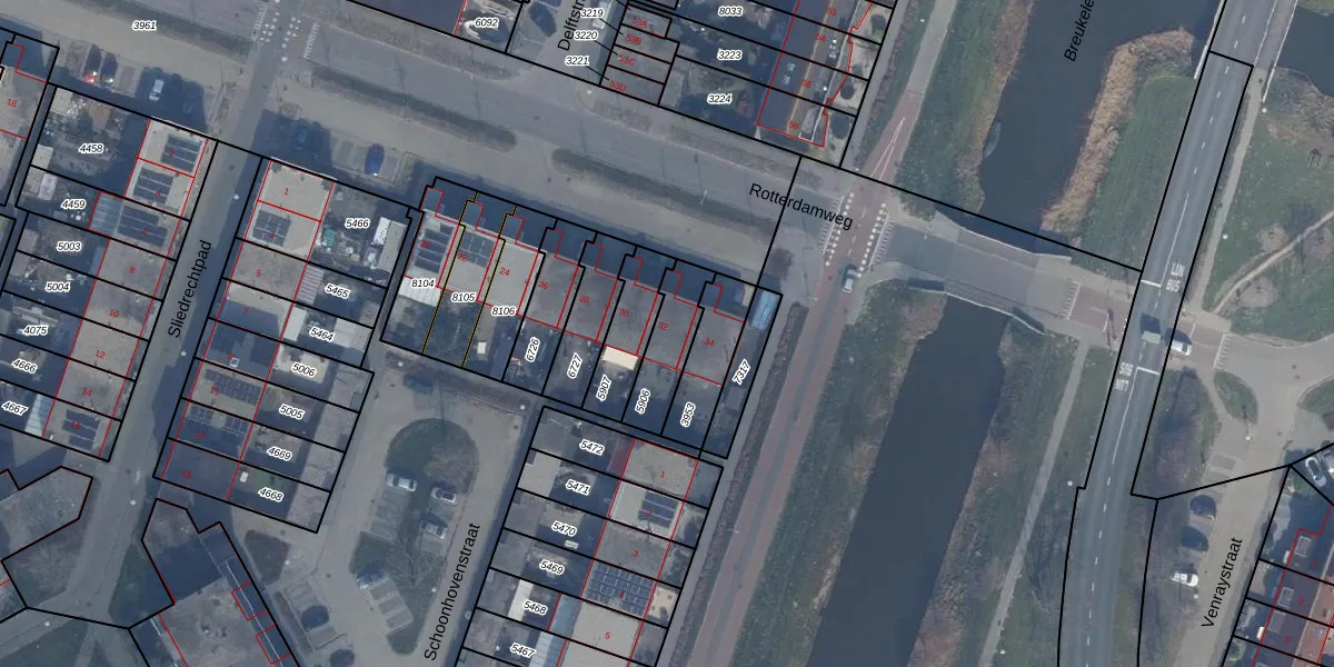 Het perceel waarop Rotterdamweg 32 staat heeft een oppervlakte van 163 m². Dit is een middelgroot perceel. De perceeloppervlakte wordt geregistreerd door het Kadaster. Gedetailleerde informatie over de maten van dit perceel kunt u vinden in het rapport Kadastrale kaart met maatvoering van Rotterdamweg 32.