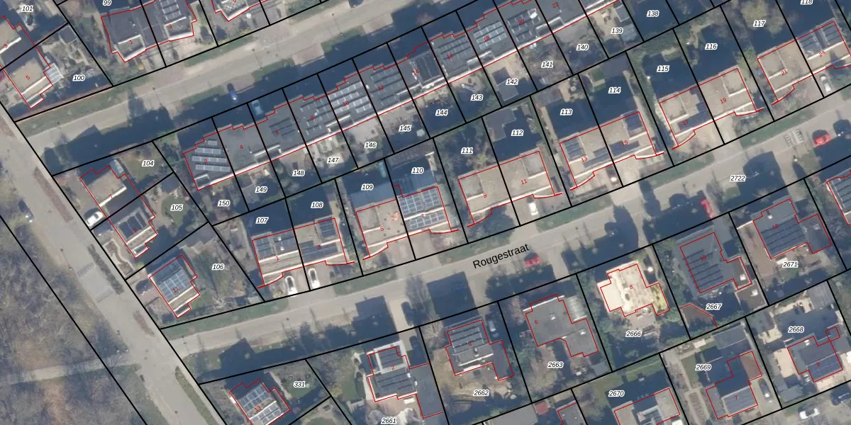 Het perceel waarop Rougestraat 7 staat heeft een oppervlakte van 325 m². Dit is een groot perceel. De perceeloppervlakte wordt geregistreerd door het Kadaster. Gedetailleerde informatie over de maten van dit perceel kunt u vinden in het rapport Kadastrale kaart met maatvoering van Rougestraat 7.