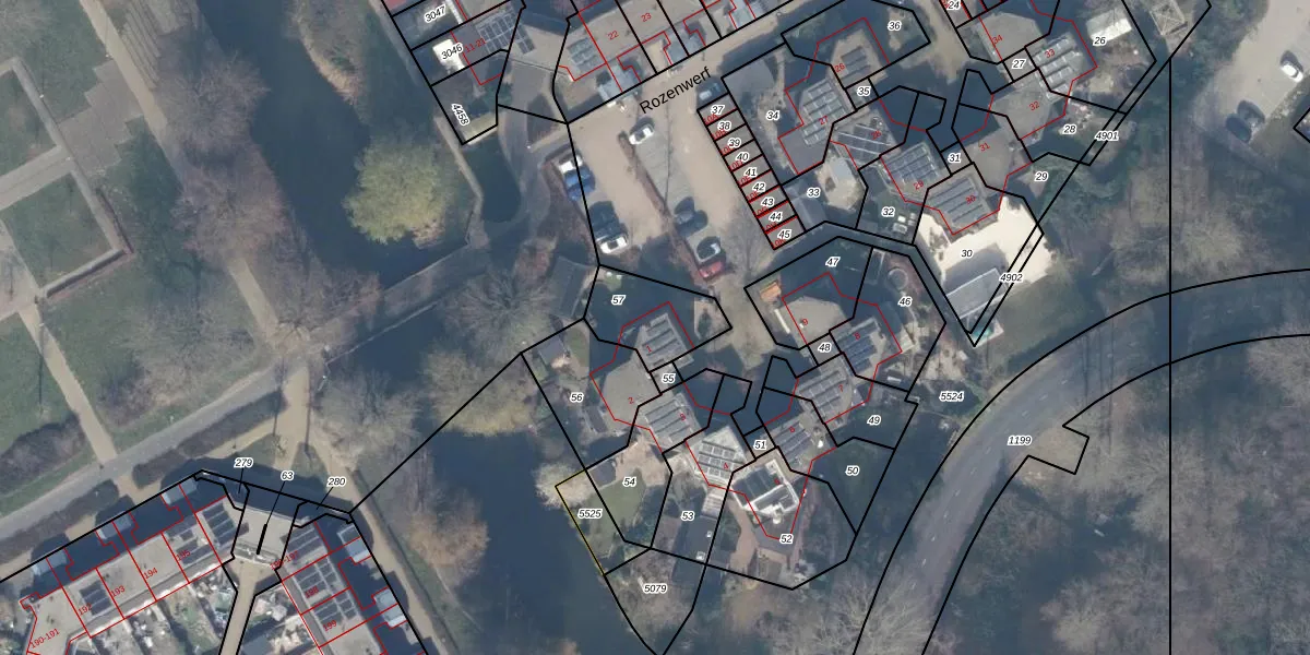 Het perceel waarop Rozenwerf 1 staat heeft een oppervlakte van 214 m². Dit is een middelgroot perceel. De perceeloppervlakte wordt geregistreerd door het Kadaster. Gedetailleerde informatie over de maten van dit perceel kunt u vinden in het rapport Kadastrale kaart met maatvoering van Rozenwerf 1.