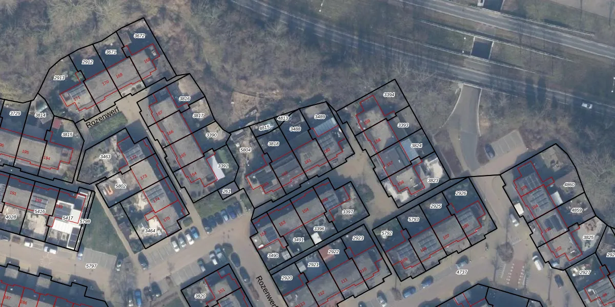 Het perceel waarop Rozenwerf 161 staat heeft een oppervlakte van 179 m². Dit is een middelgroot perceel. De perceeloppervlakte wordt geregistreerd door het Kadaster. Gedetailleerde informatie over de maten van dit perceel kunt u vinden in het rapport Kadastrale kaart met maatvoering van Rozenwerf 161.