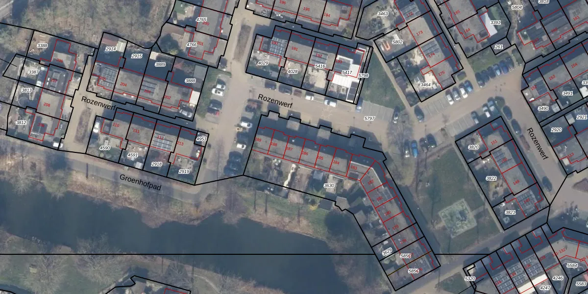 Het perceel waarop Rozenwerf 187 staat heeft een oppervlakte van 1284 m². Dit is een zeer groot perceel. De perceeloppervlakte wordt geregistreerd door het Kadaster. Gedetailleerde informatie over de maten van dit perceel kunt u vinden in het rapport Kadastrale kaart met maatvoering van Rozenwerf 187.