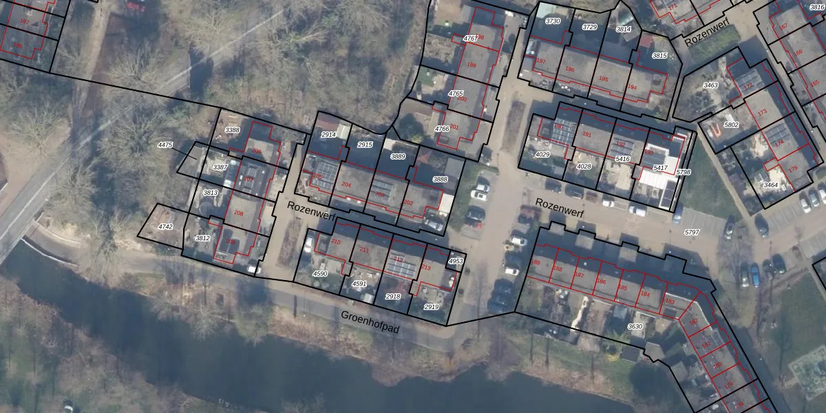Het perceel waarop Rozenwerf 202 staat heeft een oppervlakte van 238 m². Dit is een middelgroot perceel. De perceeloppervlakte wordt geregistreerd door het Kadaster. Gedetailleerde informatie over de maten van dit perceel kunt u vinden in het rapport Kadastrale kaart met maatvoering van Rozenwerf 202.