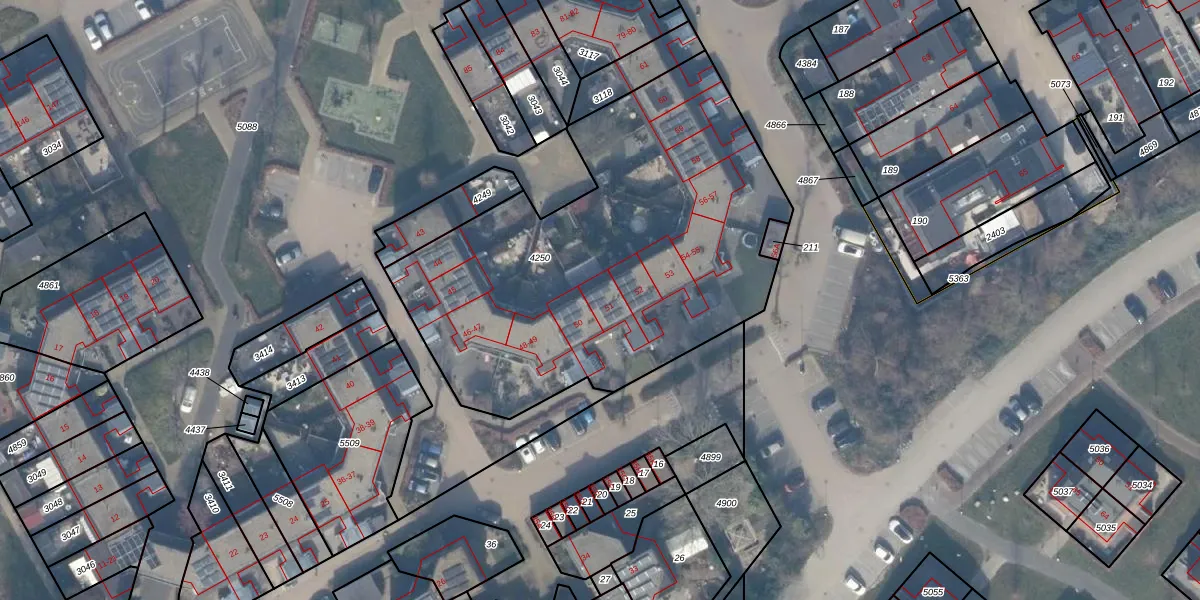 Het adres is gelegen op perceel 4250 in de sectie H en de kadastrale gemeente Almere. De kadastrale aanduiding is aldus AMR04-H-4250. Het perceel is kleiner dan gemiddeld in Almere. Het perceel is 2241 m² groot, terwijl het gemiddelde ligt op 3329,85 m². De grootste perceeloppervlakte in de kadastrale gemeente is 32,12 km². De kleinste oppervlakte bedraagt 0 m². Op het perceel liggen in totaal 17 adressen. De laatste wijziging in het de Basisregistratie Kadaster (BRK) was op 02-12-2009.