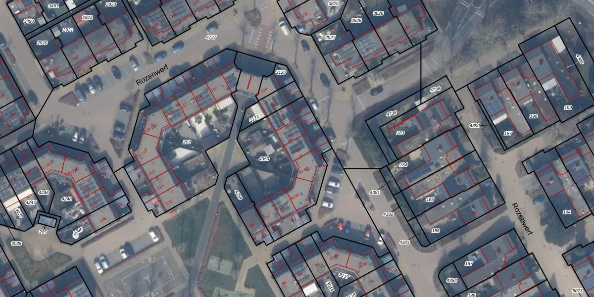 Het perceel waarop Rozenwerf 93 staat heeft een oppervlakte van 971 m². Dit is een groot perceel. De perceeloppervlakte wordt geregistreerd door het Kadaster. Gedetailleerde informatie over de maten van dit perceel kunt u vinden in het rapport Kadastrale kaart met maatvoering van Rozenwerf 93.