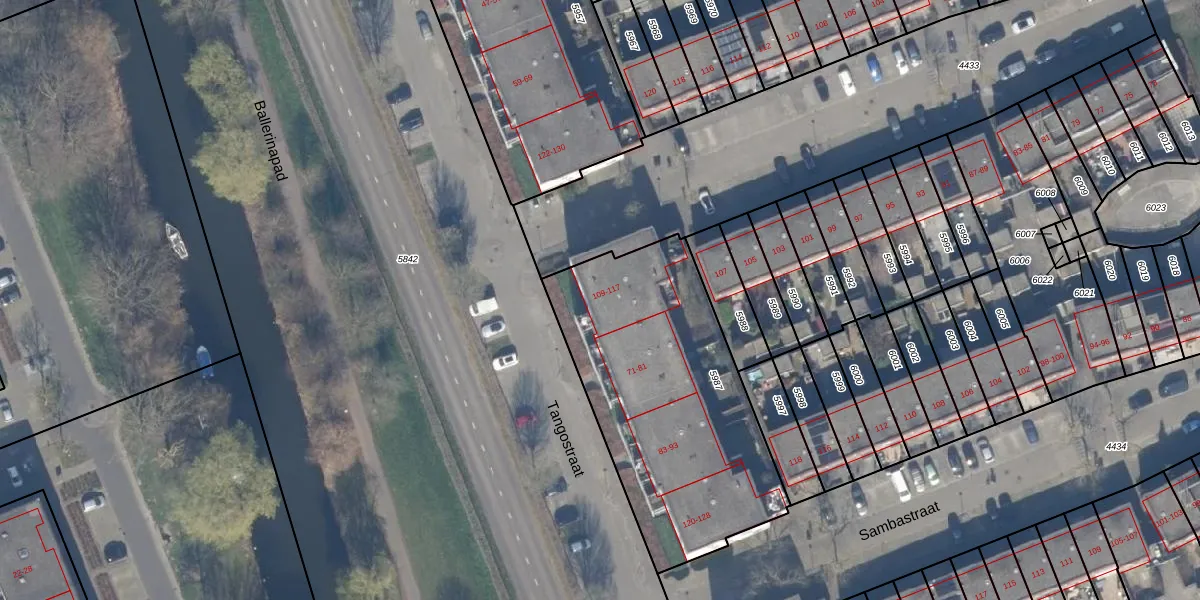 Rumbastraat 111 is gelegen op kadastraal perceel AMR04U5987. Deze kadastrale aanduiding is uniek en wordt gebruikt door het Kadaster om eigendomsrechten en andere zakelijke rechten vast te leggen. Het perceel maakt onderdeel uit van de kadastrale gemeente Almere.