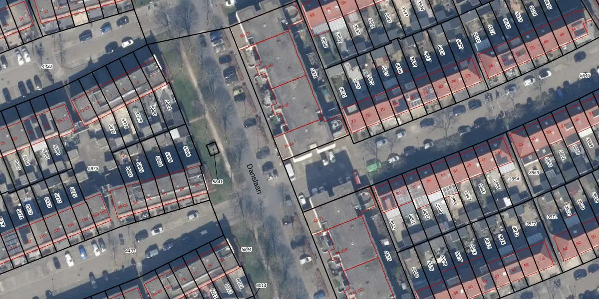 Het adres is gelegen op perceel 4421 in de sectie U en de kadastrale gemeente Almere. De kadastrale aanduiding is aldus AMR04-U-4421. Het perceel is kleiner dan gemiddeld in Almere. Het perceel is 1167 m² groot, terwijl het gemiddelde ligt op 3327,75 m². Het grootste perceel in de kadastrale gemeente is 32,12 km². Het kleinste perceel heeft een oppervlakte van 0 m². Op het perceel zijn 22 adressen aanwezig. In de Basisregistratie Kadaster (BRK) werden de grenzen van het perceel geregistreerd op 28-06-1999.