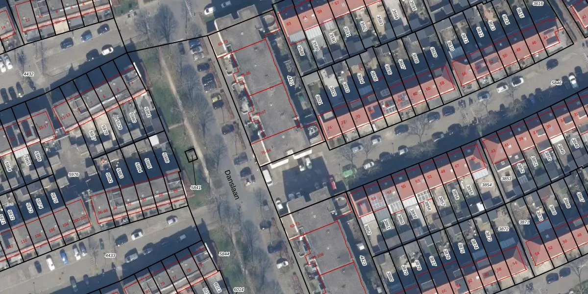Het adres is gelegen op perceel 4421 in de sectie U en de kadastrale gemeente Almere. De kadastrale aanduiding is aldus AMR04-U-4421. Het perceel is kleiner dan gemiddeld in Almere. Het perceel is 1167 m² groot, terwijl het gemiddelde ligt op 3327,75 m². Het grootste perceel in de kadastrale gemeente is 32,12 km². Het kleinste perceel heeft een oppervlakte van 0 m². Op het perceel zijn 22 adressen aanwezig. De huidige grenzen van het perceel zijn digitaal in de Basisregistratie Kadaster (BRK) geregistreerd op 28-06-1999.