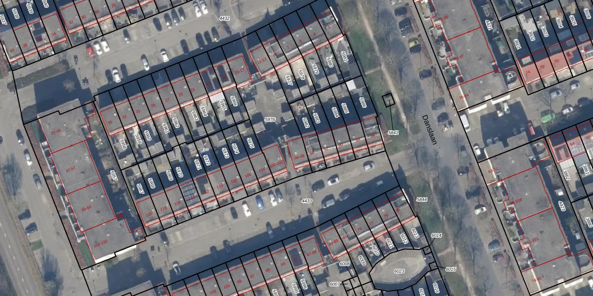 Het adres is gelegen op perceel 5976 in de sectie U en de kadastrale gemeente Almere. De kadastrale aanduiding is aldus AMR04-U-5976. Het perceel is kleiner dan gemiddeld in Almere. Het perceel is 703 m² groot, terwijl het gemiddelde ligt op 3327,75 m². Het grootste perceel in de kadastrale gemeente is 32,12 km². Het kleinste perceel heeft een oppervlakte van 0 m². Op het perceel liggen in totaal 8 adressen. De huidige grenzen van het perceel zijn digitaal in de Basisregistratie Kadaster (BRK) geregistreerd op 15-08-2000.