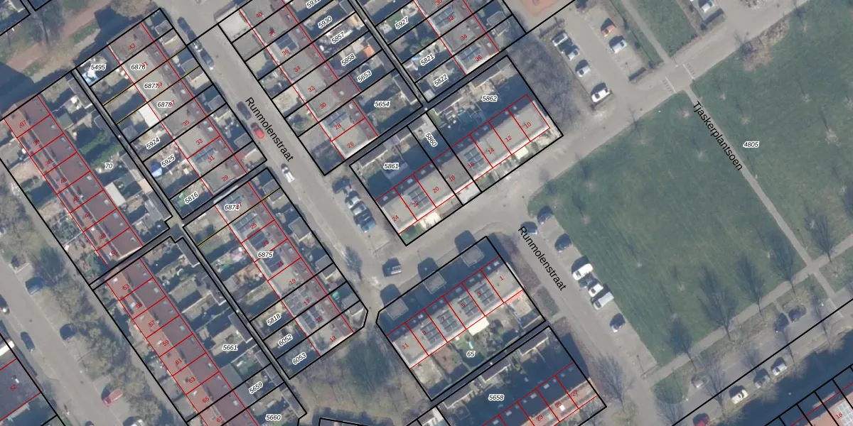 Het perceel waarop Runmolenstraat 22 staat heeft een oppervlakte van 377 m². Dit is een groot perceel. De perceeloppervlakte wordt geregistreerd door het Kadaster. Gedetailleerde informatie over de maten van dit perceel kunt u vinden in het rapport Kadastrale kaart met maatvoering van Runmolenstraat 22.