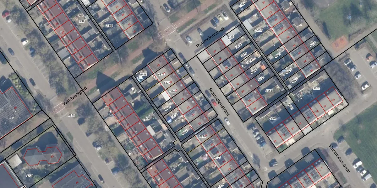 Het perceel waarop Runmolenstraat 35 staat heeft een oppervlakte van 131 m². Dit is een middelgroot perceel. De perceeloppervlakte wordt geregistreerd door het Kadaster. Gedetailleerde informatie over de maten van dit perceel kunt u vinden in het rapport Kadastrale kaart met maatvoering van Runmolenstraat 35.