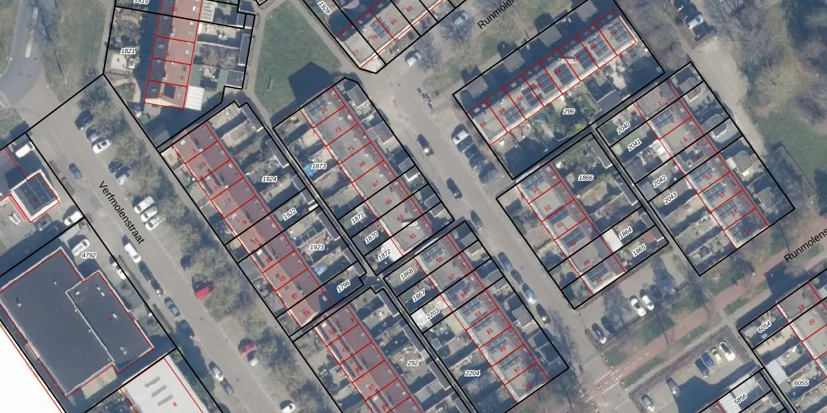 Het perceel waarop Runmolenstraat 63 staat heeft een oppervlakte van 125 m². Dit is een middelgroot perceel. De perceeloppervlakte wordt geregistreerd door het Kadaster. Gedetailleerde informatie over de maten van dit perceel kunt u vinden in het rapport Kadastrale kaart met maatvoering van Runmolenstraat 63.