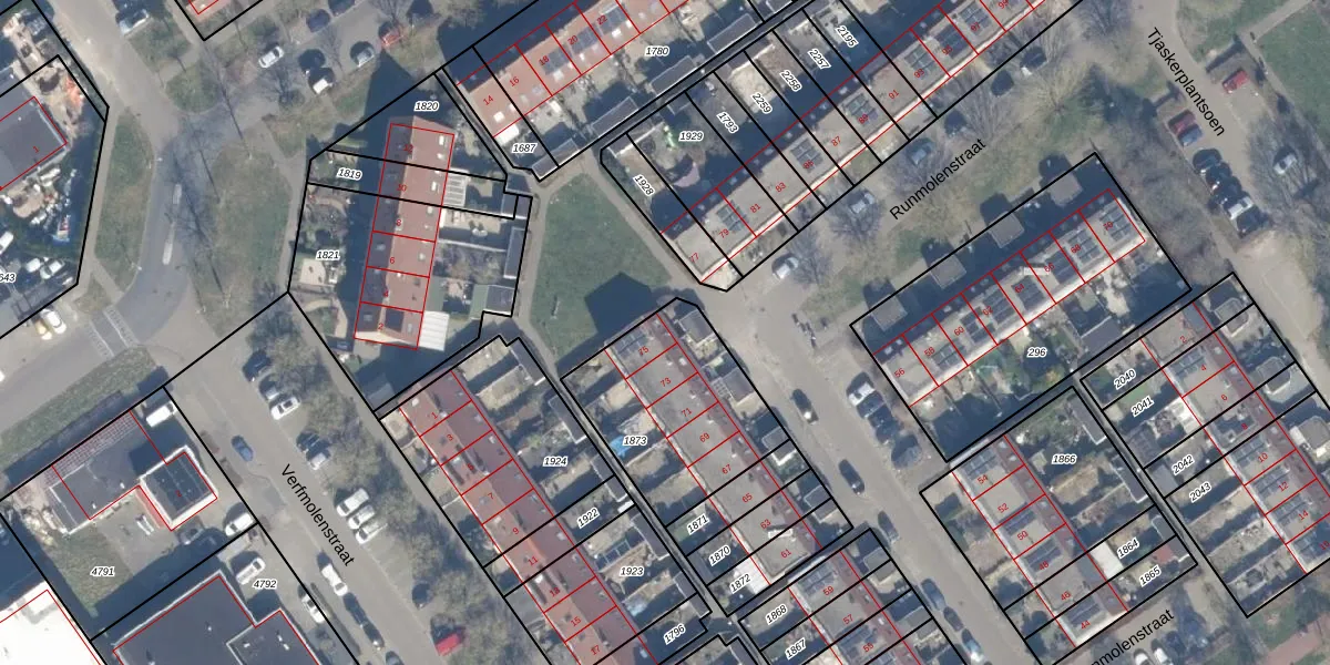 Het perceel waarop Runmolenstraat 75 staat heeft een oppervlakte van 627 m². Dit is een groot perceel. De perceeloppervlakte wordt geregistreerd door het Kadaster. Gedetailleerde informatie over de maten van dit perceel kunt u vinden in het rapport Kadastrale kaart met maatvoering van Runmolenstraat 75.