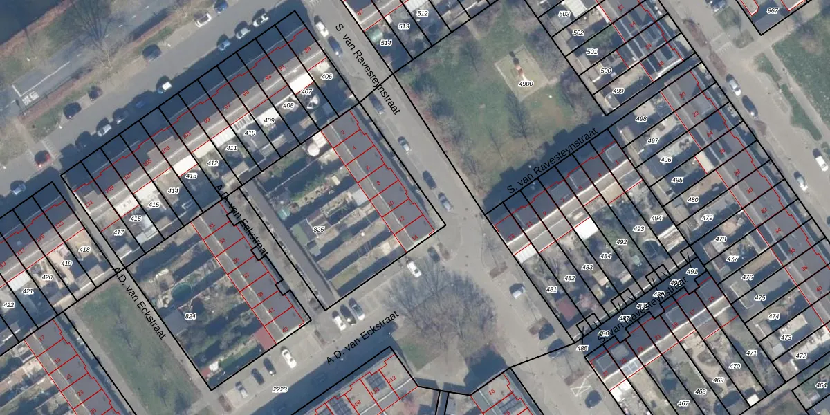 Het perceel waarop S. van Ravesteynstraat 12 staat heeft een oppervlakte van 1287 m². Dit is een zeer groot perceel. De perceeloppervlakte wordt geregistreerd door het Kadaster. Gedetailleerde informatie over de maten van dit perceel kunt u vinden in het rapport Kadastrale kaart met maatvoering van S. van Ravesteynstraat 12.