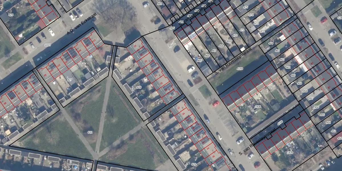 S. van Ravesteynstraat 28 is gelegen op kadastraal perceel AMR04P828. Deze kadastrale aanduiding is uniek en wordt gebruikt door het Kadaster om eigendomsrechten en andere zakelijke rechten vast te leggen. Het perceel maakt onderdeel uit van de kadastrale gemeente Almere.