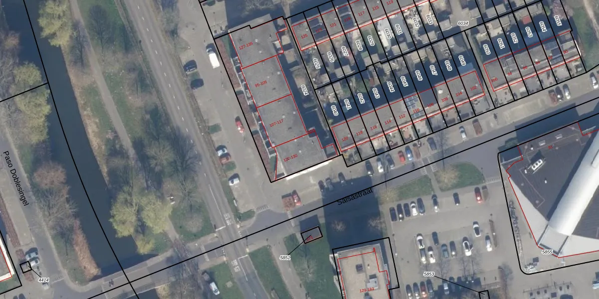 Het perceel waarop Salsastraat 130 staat heeft een oppervlakte van 1269 m². Dit is een zeer groot perceel. De perceeloppervlakte wordt geregistreerd door het Kadaster. Gedetailleerde informatie over de maten van dit perceel kunt u vinden in het rapport Kadastrale kaart met maatvoering van Salsastraat 130.