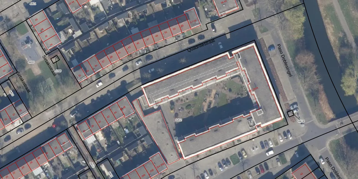 Het adres is gelegen op perceel 6402 in de sectie U en de kadastrale gemeente Almere. De kadastrale aanduiding is aldus AMR04-U-6402. Het perceel is met 5333 m² relatief groot. Het gemiddelde ligt in de kadastrale gemeente Almere op 3327,75 m². Het grootste perceel in de kadastrale gemeente is 32,12 km². Het kleinste perceel heeft een oppervlakte van 0 m². Op het perceel liggen in totaal 75 adressen. De laatste wijziging in het de Basisregistratie Kadaster (BRK) was op 02-12-2003.