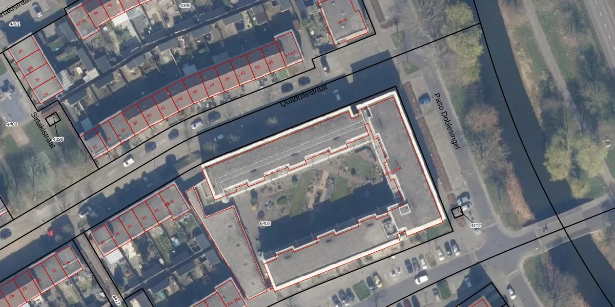 Het adres is gelegen op perceel 6402 in de sectie U en de kadastrale gemeente Almere. De kadastrale aanduiding is aldus AMR04-U-6402. Het perceel is met 5333 m² relatief groot. Het gemiddelde ligt in de kadastrale gemeente Almere op 3327,75 m². Het grootste perceel in de kadastrale gemeente is 32,12 km². Het kleinste perceel heeft een oppervlakte van 0 m². Op het perceel liggen in totaal 75 adressen. De huidige grenzen van het perceel zijn digitaal in de Basisregistratie Kadaster (BRK) geregistreerd op 02-12-2003.