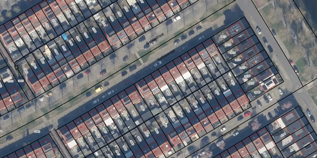 Het perceel waarop Salsastraat 15 staat heeft een oppervlakte van 131 m². Dit is een middelgroot perceel. De perceeloppervlakte wordt geregistreerd door het Kadaster. Gedetailleerde informatie over de maten van dit perceel kunt u vinden in het rapport Kadastrale kaart met maatvoering van Salsastraat 15.