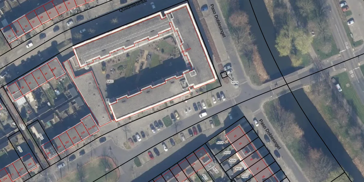 Het adres is gelegen op perceel 6402 in de sectie U en de kadastrale gemeente Almere. De kadastrale aanduiding is aldus AMR04-U-6402. Het perceel is met 5333 m² relatief groot. Het gemiddelde ligt in de kadastrale gemeente Almere op 3327,75 m². Het grootste perceel in de kadastrale gemeente is 32,12 km². Het kleinste perceel heeft een oppervlakte van 0 m². Er zijn 75 adressen aanwezig op het perceel. De huidige grenzen van het perceel zijn digitaal in de Basisregistratie Kadaster (BRK) geregistreerd op 02-12-2003.