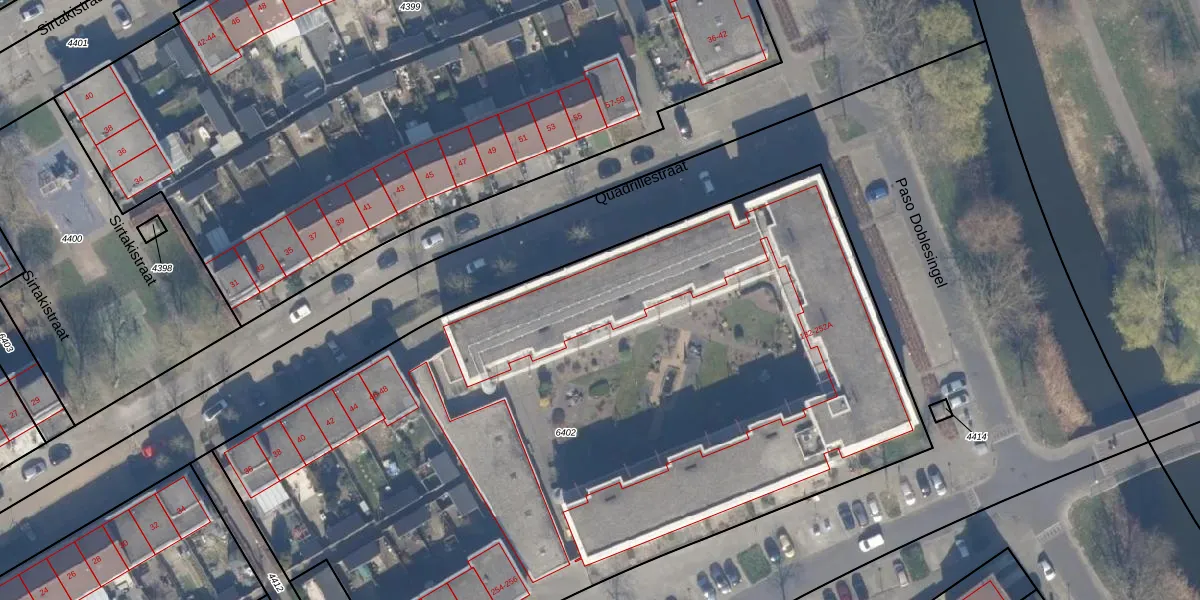 Het adres is gelegen op perceel 6402 in de sectie U en de kadastrale gemeente Almere. De kadastrale aanduiding is aldus AMR04-U-6402. Het perceel is met 5333 m² relatief groot. Het gemiddelde ligt in de kadastrale gemeente Almere op 3327,75 m². Het grootste perceel in de kadastrale gemeente is 32,12 km². Het kleinste perceel heeft een oppervlakte van 0 m². Op het perceel zijn 75 adressen aanwezig. De huidige grenzen van het perceel zijn digitaal in de Basisregistratie Kadaster (BRK) geregistreerd op 02-12-2003.