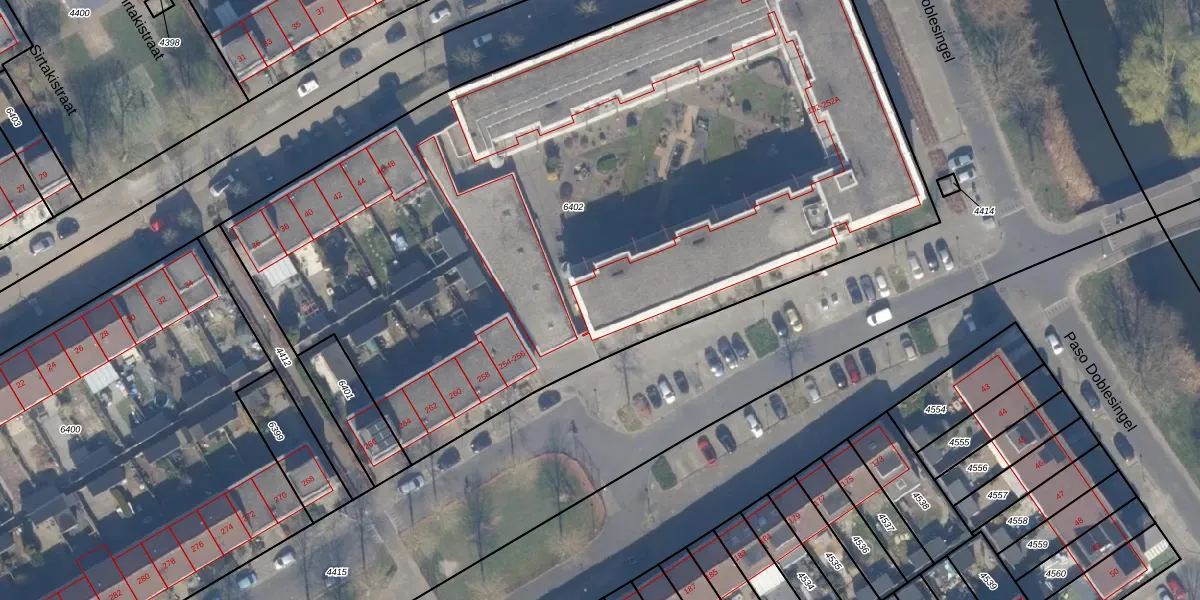 Het adres is gelegen op perceel 6402 in de sectie U en de kadastrale gemeente Almere. De kadastrale aanduiding is aldus AMR04-U-6402. Het perceel is met 5333 m² relatief groot. Het gemiddelde ligt in de kadastrale gemeente Almere op 3327,75 m². Het grootste perceel in de kadastrale gemeente is 32,12 km². Het kleinste perceel heeft een oppervlakte van 0 m². Op het perceel liggen in totaal 75 adressen. De huidige grenzen van het perceel zijn digitaal in de Basisregistratie Kadaster (BRK) geregistreerd op 02-12-2003.