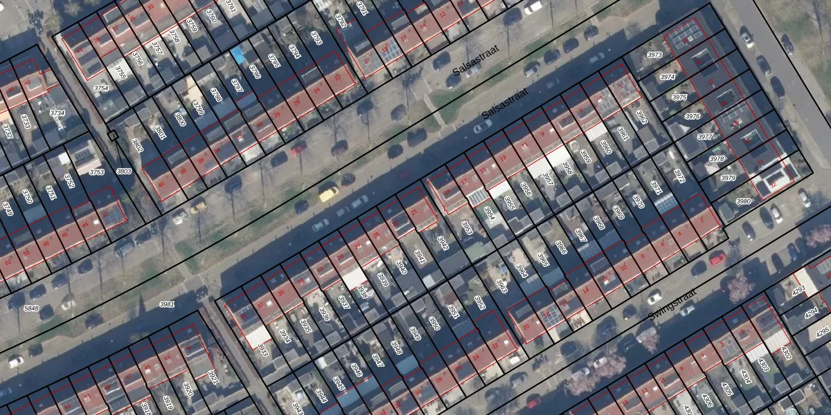 Het perceel waarop Salsastraat 21 staat heeft een oppervlakte van 170 m². Dit is een middelgroot perceel. De perceeloppervlakte wordt geregistreerd door het Kadaster. Gedetailleerde informatie over de maten van dit perceel kunt u vinden in het rapport Kadastrale kaart met maatvoering van Salsastraat 21.