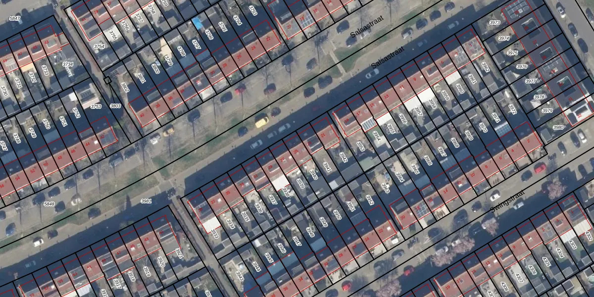 Het perceel waarop Salsastraat 25 staat heeft een oppervlakte van 131 m². Dit is een middelgroot perceel. De perceeloppervlakte wordt geregistreerd door het Kadaster. Gedetailleerde informatie over de maten van dit perceel kunt u vinden in het rapport Kadastrale kaart met maatvoering van Salsastraat 25.