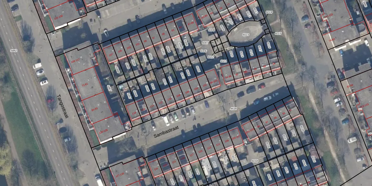 Het perceel waarop Sambastraat 106 staat heeft een oppervlakte van 123 m². Dit is een middelgroot perceel. De perceeloppervlakte wordt geregistreerd door het Kadaster. Gedetailleerde informatie over de maten van dit perceel kunt u vinden in het rapport Kadastrale kaart met maatvoering van Sambastraat 106.
